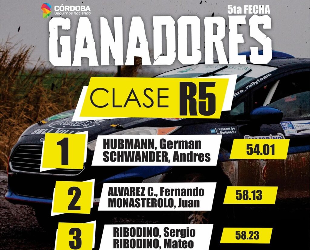 Germán Hubmann/Andrés Schwander (Skoda Fabia Rally2), lograron la primera victoria con un auto de la máxima divisional. El representante de Canals completó una actuación sin fisuras y con un muy buen ritmo, para imponer condiciones en el Rally Cordobés en San Francisco.