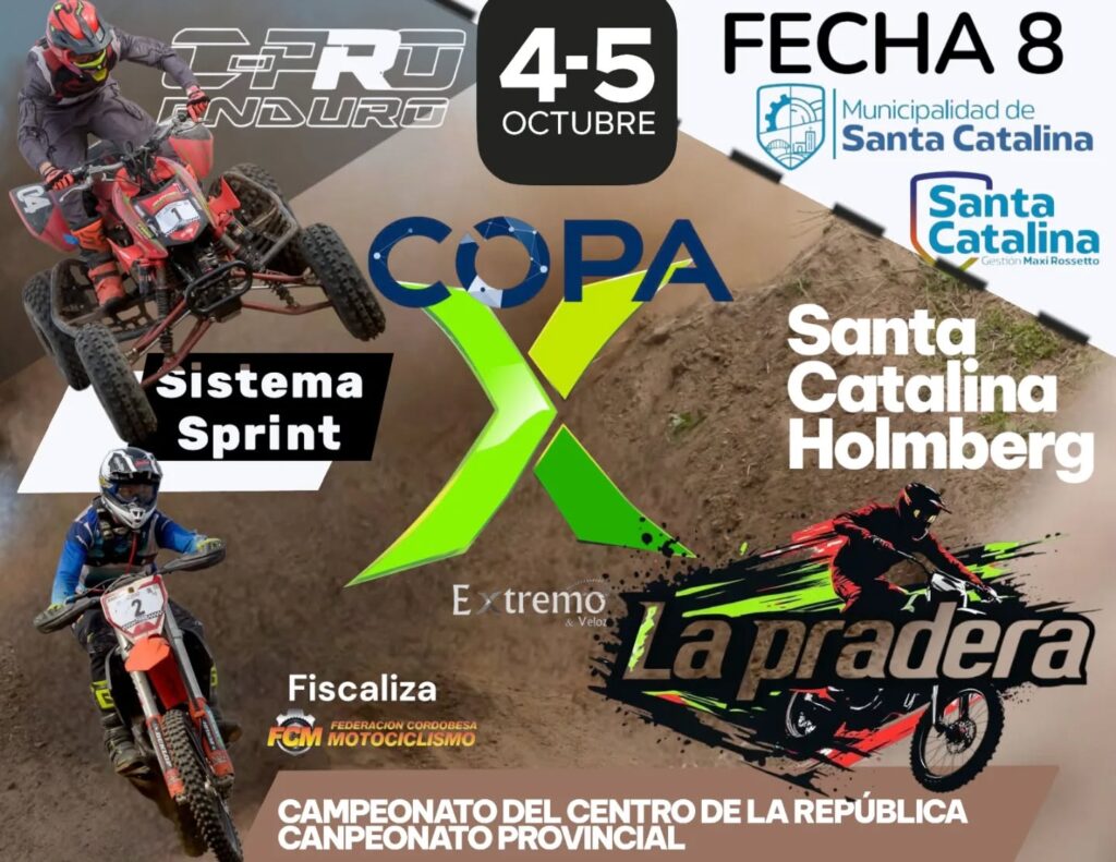 En Santa Catalina Holmberg, una carrera muy especial, diferente, en todos sus aspectos los días 4 y 5 de octubre. ORGANIZADA POR CPRO Enduro y FISCALIZADA por la FEDERACIÓN CORDOBESA DE MOTOCICLISMO.