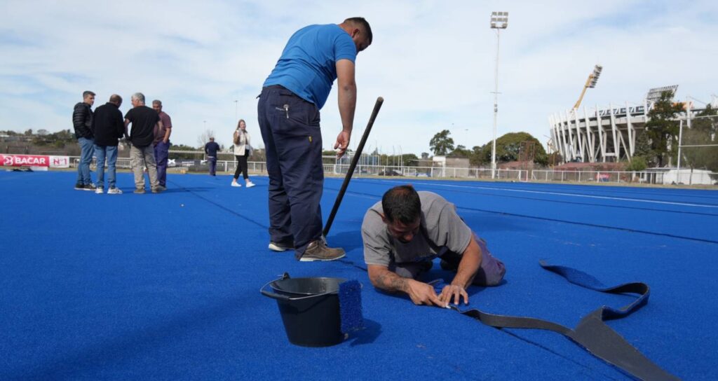 Avanza la obra de recambio de la superficie del estadio de hockey Soledad García, con la colocación de una nueva carpeta de césped sintético y un nuevo sistema de riego automático. El cambio total de las instalaciones permitirá que el estadio sea homologado por la Federación Internacional de Hockey (FIH)