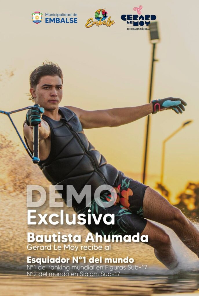 Este sábado 24 de enero en aguas del lago de Embalse se realizará una demostración de esquí náutico a cargo de Bautista Ahumada, actual número uno del ranking mundial Sub-17 en la disciplina figuras.