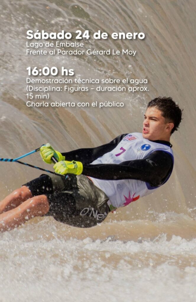 Desde las 16.00 en el Lago de Embalse frente al Parador Gerard Le Moy a metros del Cuartel de Bomberos, el referente cordobés de este deporte realizará una demostración técnica sobre el agua.