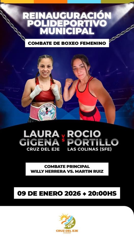El viernes 9 de enero de 2026 habrá en el Polideportivo Municipal de Cruz del Eje, que se reinaugura, una interesante velada boxística.