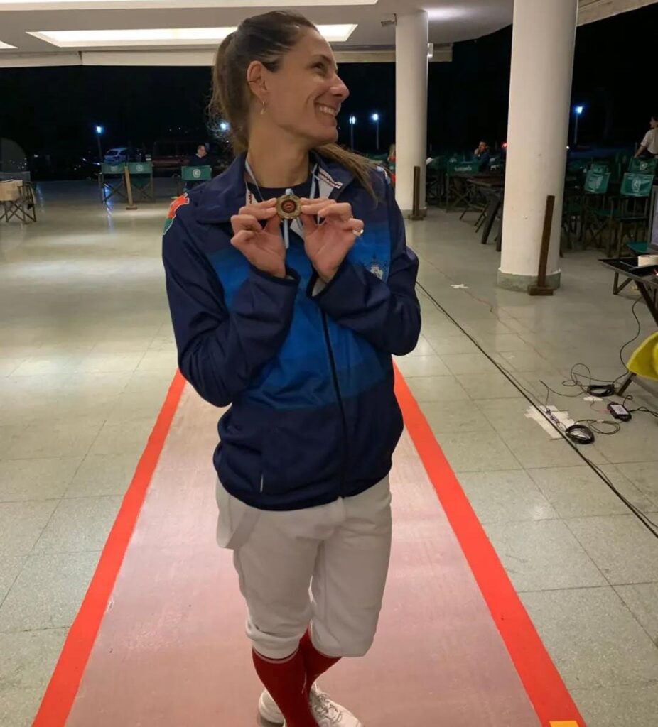 La presidenta de la Federación Cordobesa de Esgrima transita sus primeros días como dirigenta, pero además sigue practicando la actividad del florete, la espada y el sable.