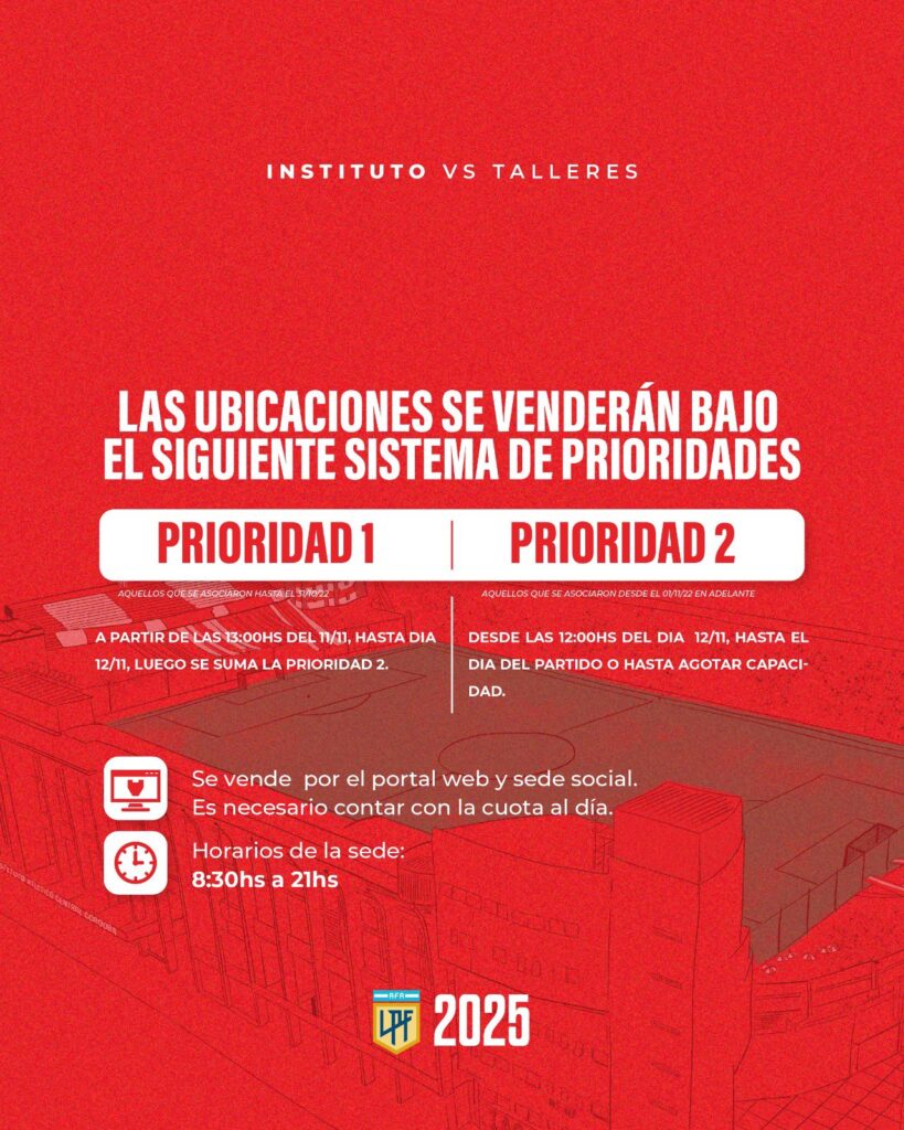 El próximo domingo en el Monumental de Alta Córdoba, a las 17.00, Instituto recibirá a Talleres por la fecha 16 del Torneo Betano Clausura.