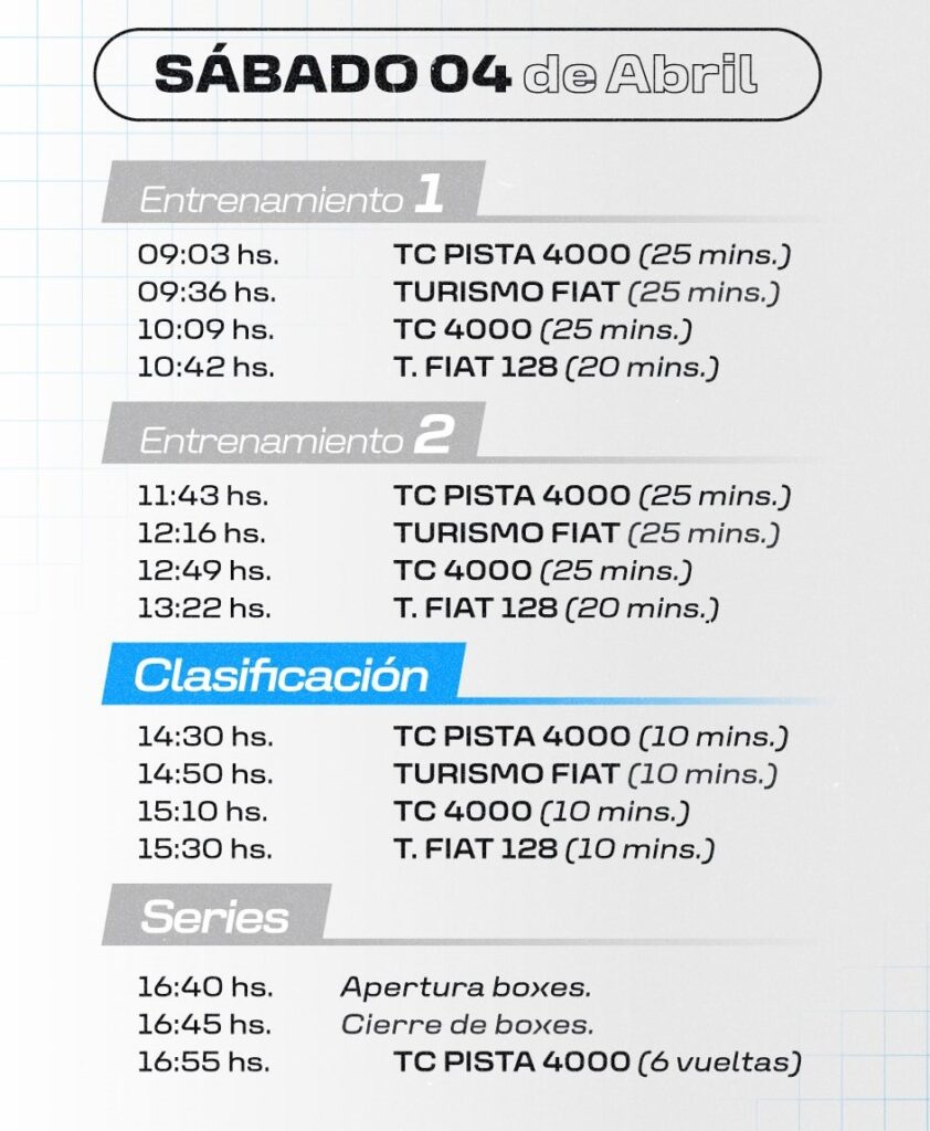 Nuevas expectativas en las 5 categorias: TC 4000, TC Pista 4000, Turismo Fiat, Turismo Fiat 128 y Fórmula Renault Plus CBA. Este fin de semana en el Autódromo Oscar Cabalén.