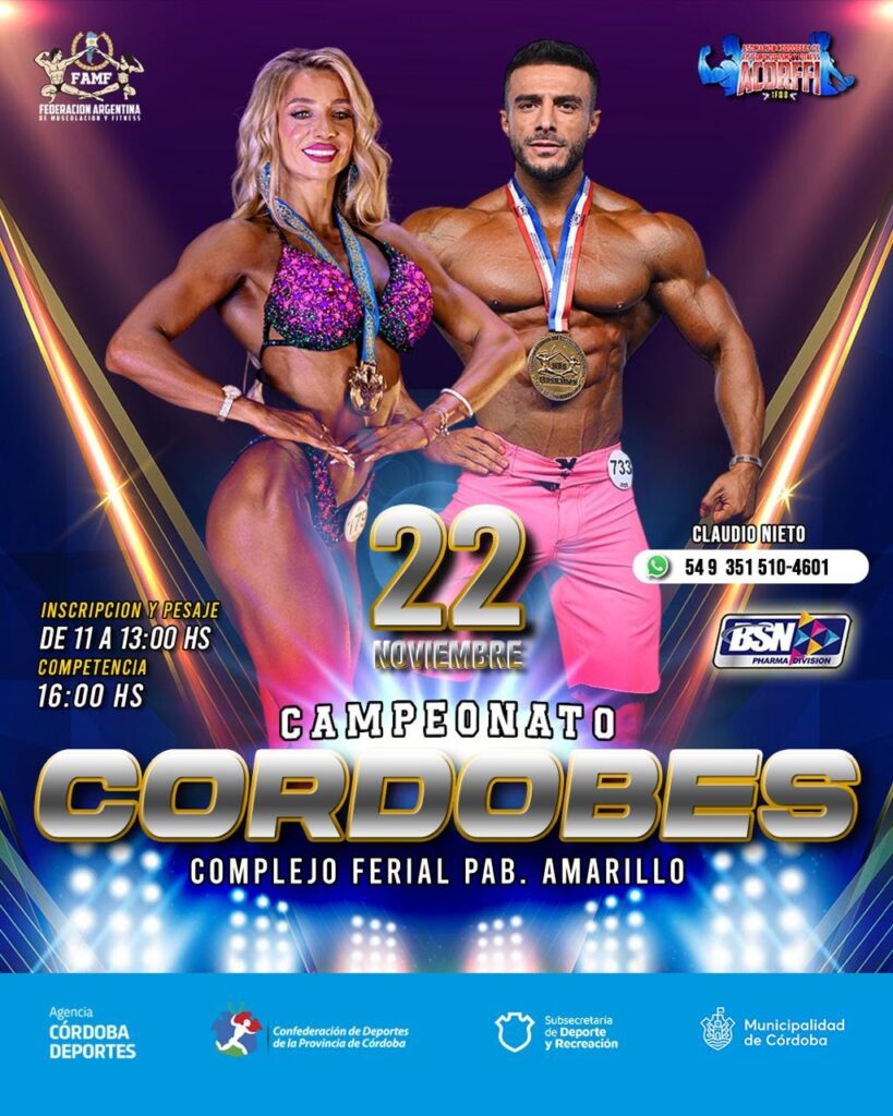 El evento se desarrollará el venidero 22 de noviembre en el Complejo Ferial, Pabellón Amarillo, organizado por la Asociación Cordobesa de Fisicoculturismo y Fitness.