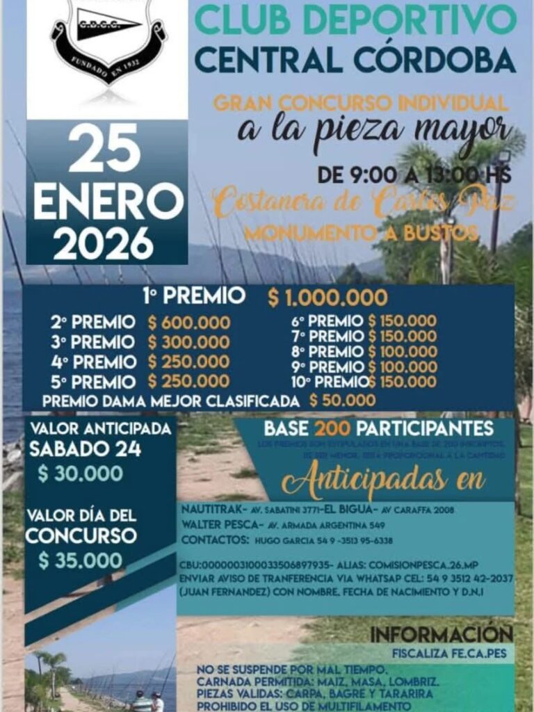 El certamen organizado por el Club Deportivo Personal de Renault y fiscalizado por la Federación de Caza y Pesca de la Provincia de Córdoba se disputó en la Costanera de Villa Carlos Paz.