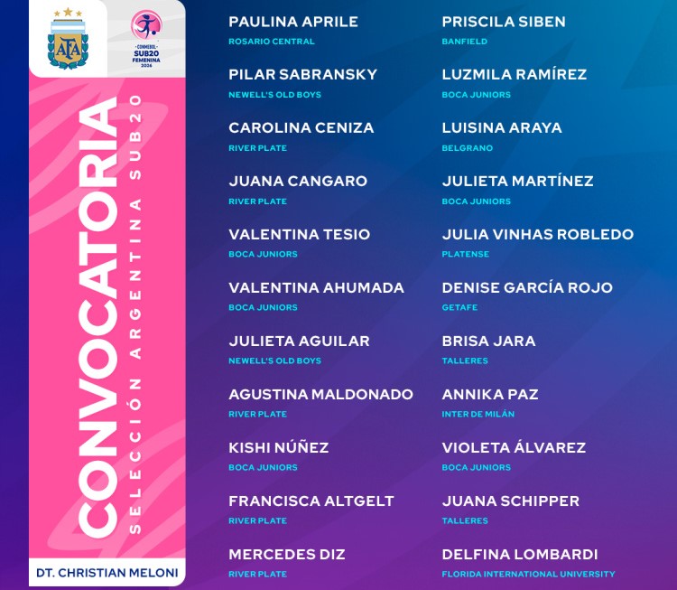La selección argentina femenina Sub-20 tiene en su plantel dos jugadoras de Talleres y una de Belgrano.