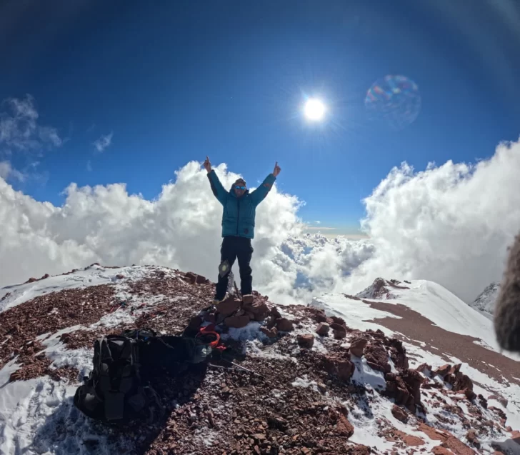 Junto a Sebastián Mastrapasqua, también guía del ISAUI, regresó a la montaña y coronaron la cumbre en siete días, precisamente el 11 de enero de este 2026. Fue a las 18 horas cuando dieron el último paso hacia la cima.