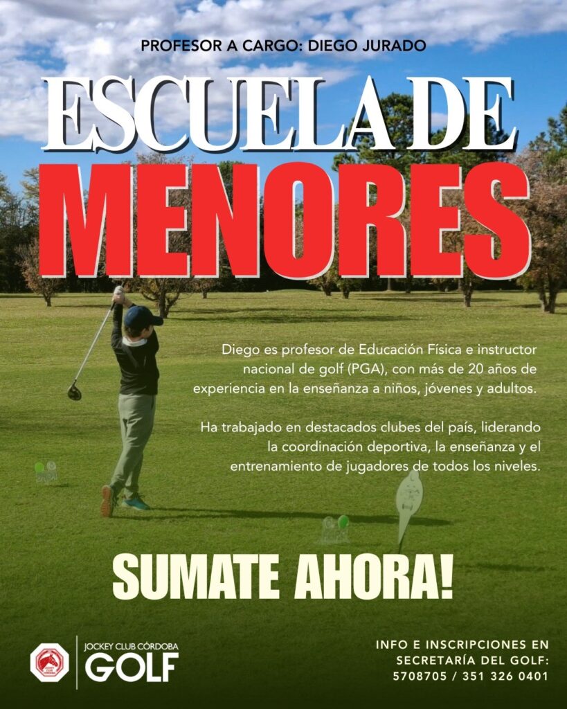 Sumate a la Escuela de Menores del JOCKEY CLUB CÓRDOBA y descubrí el mundo del golf desde chico, de la mano del profesor Diego Jurado, con más de 20 años de experiencia enseñando a niños y jóvenes en todo el país.