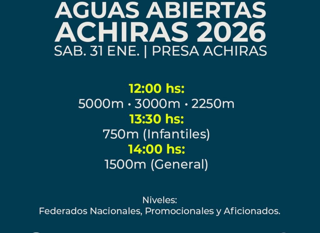 Se disputó este sábado el evento de aguas abiertas, denominado Maratón de Aguas Abiertas “ACHIRAS 2026”, en la localidad del sur cordobés.