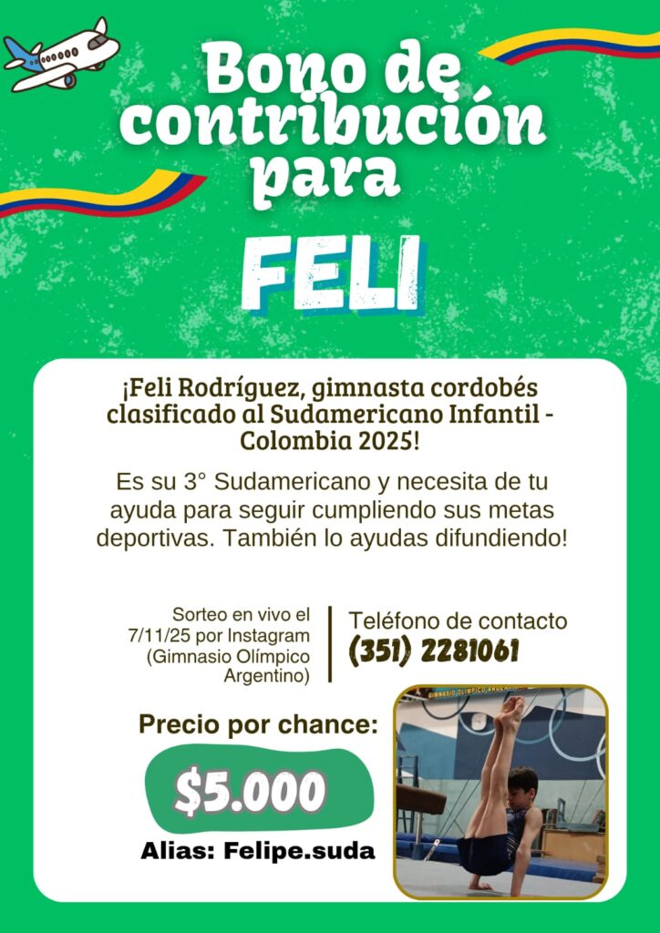 El gimnasta cordobés de 13 años del GOA (Gimnasio Olímpico Argentino), logró clasificar por tercera vez a un Campeonato Sudamericano de Gimnasia Artística Masculina. La competencia se llevará a cabo en Medellín, Colombia, del 10 al 15 de noviembre.