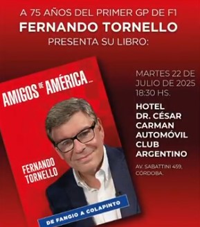 Fernando Tornello presentó su libro «Amigos de América» en Córdoba y dialogó con la prensa no solamente de la presentación sino también de todo lo que tiene que ver con el automovilismo y principalmente sobre el mundo de la Fórmula 1, la máxima categoría del automovilismo mundial.