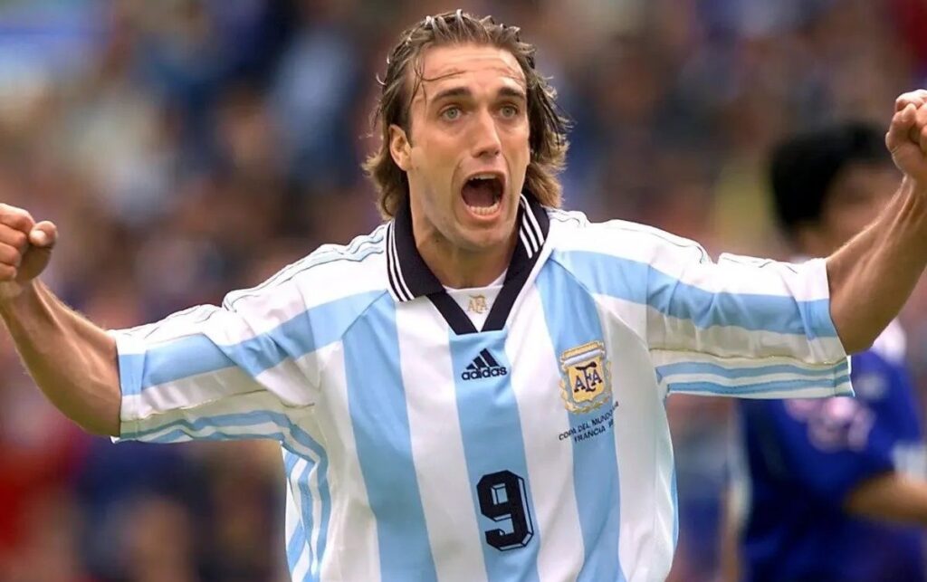 En la Selección Argentina jugó 77 partidos oficiales y marcó 54 goles. (1991 – 2002).
