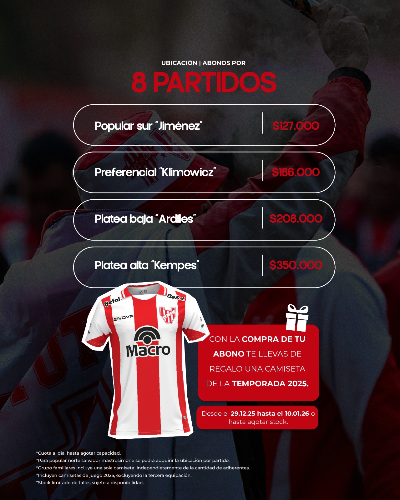 Instituto A. C. C. lanzó oficialmente la venta de abonos para el próximo torneo, con nuevos beneficios para socios y socias. La Gloria disputará 8 encuentros en el Monumental de Alta Córdoba y vos podés reservar tu lugar con antelación.
