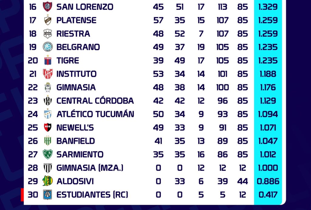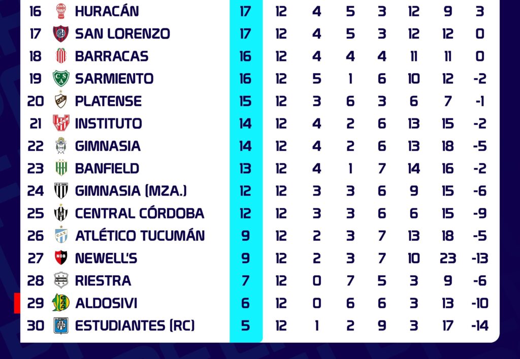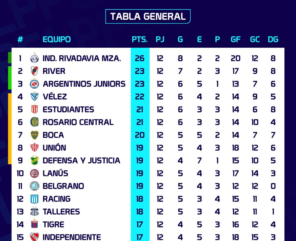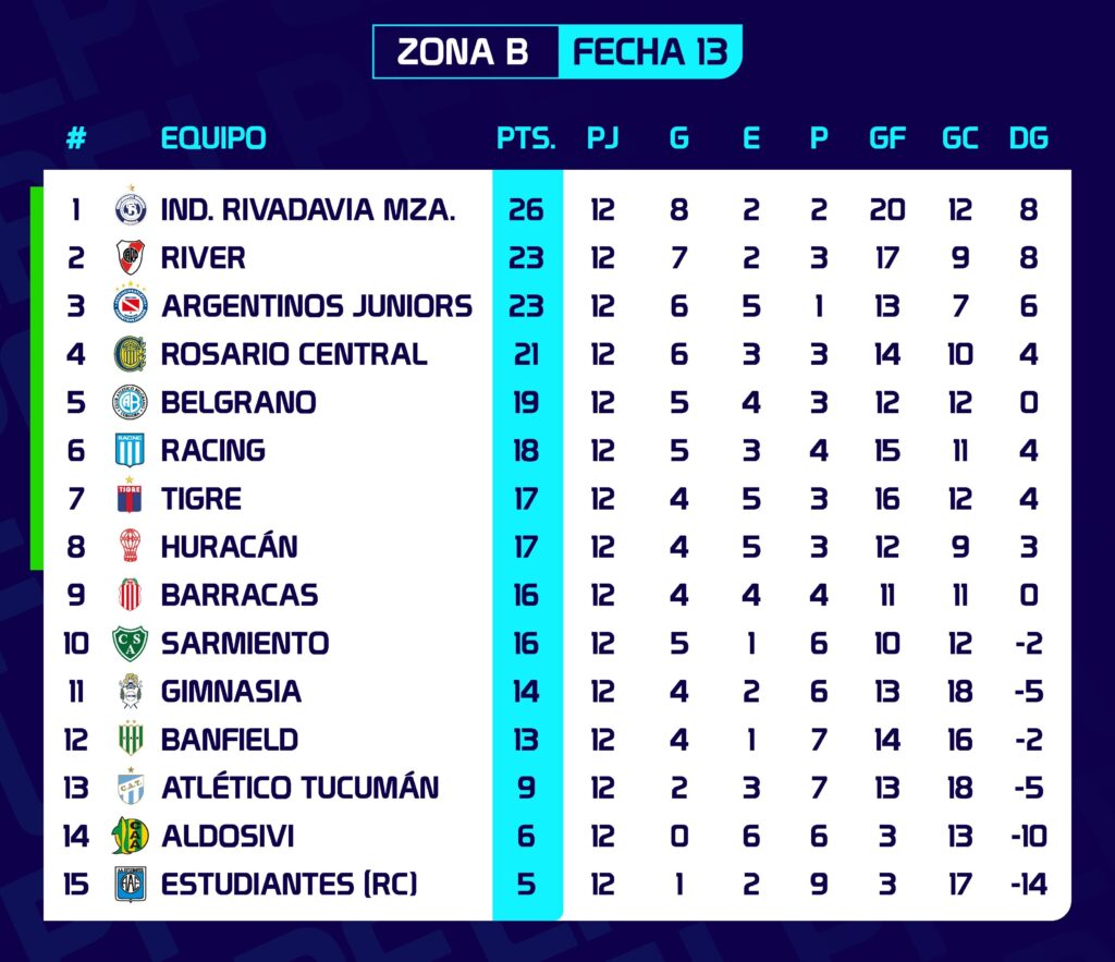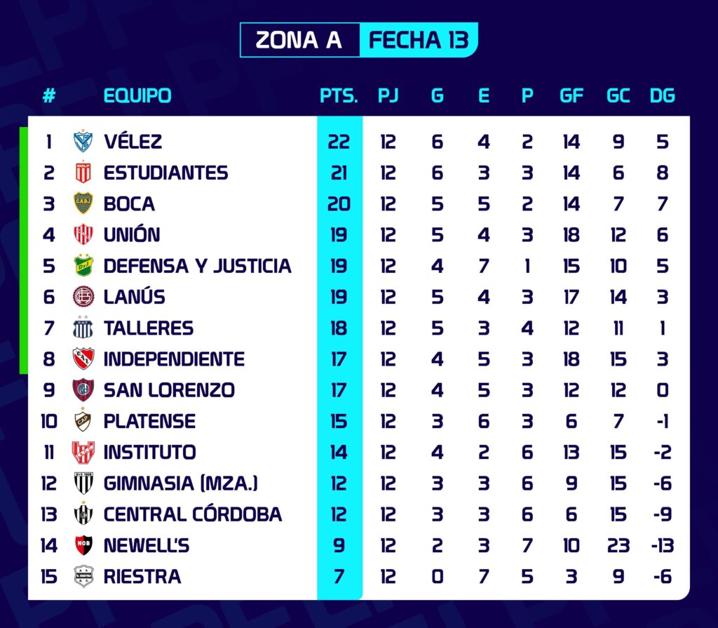 Estas son las tablas de posiciones finalizada la 13ª fecha del torneo de la Liga Profesional de Fútbol.