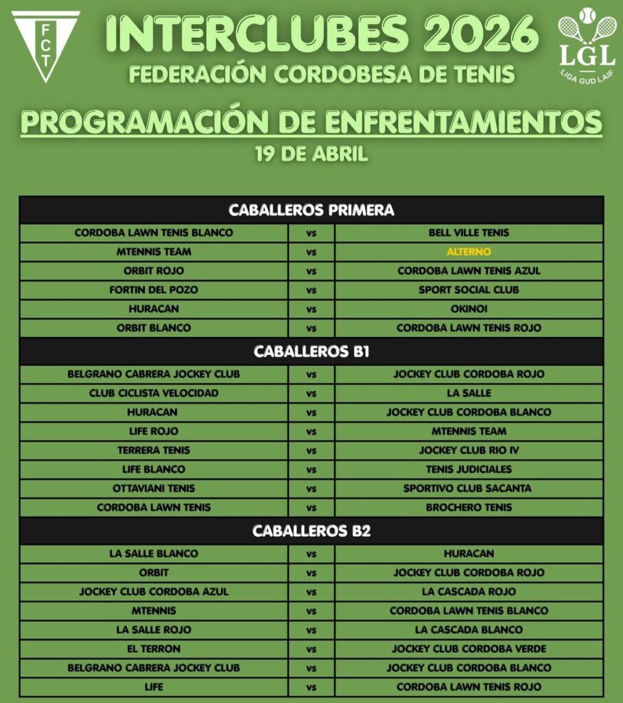 Después de muchos años, la Federación Cordobesa de Tenis vuelve al formato tradicional de Interclubes. El que se juega en equipo, en casa y de visitante, con rivalidades y amistades. AQUÍ: Programación de los enfrentamientos.
