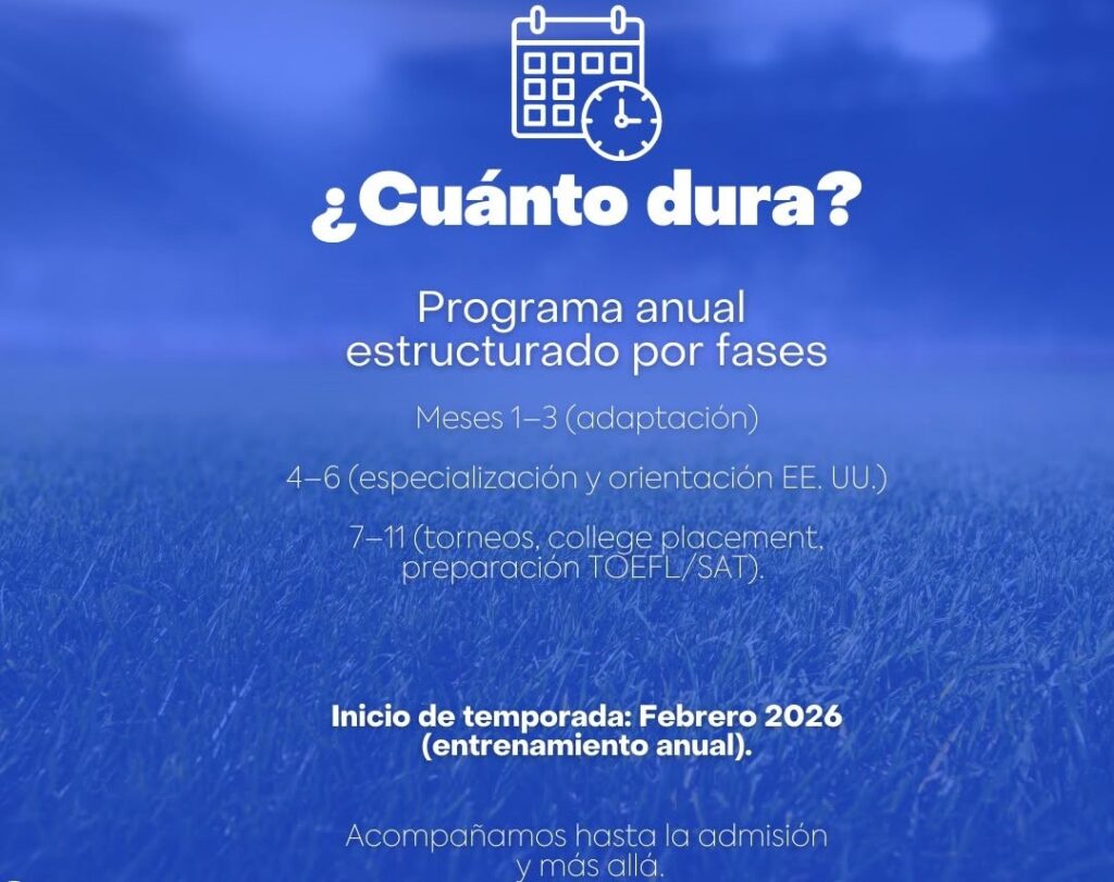 Una vez claro esto, podés acceder a estos programas: un programa senior, con un costo anual de US$ 15.000 (cuenta con entrenamiento élite, seguimiento académico, desarrollo integral, entre otras cosas), un programa trip full experience (con viaje grupal a EE.UU., participación a ferias, sesiones con reclutadores y orientadores académicos, entre otros) y un programa de Servicios Adicionales (que cuenta con servicios conexión con universidades, optimización del perfil del atleta, preparación física especializada. formación nutricional, psicología deportiva, y mucho más).