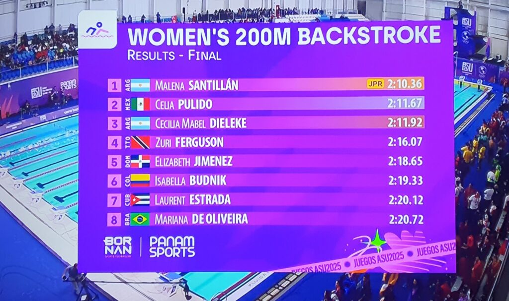 La nadadora cordobesa nacida en San Francisco se había clasificado por la mañana en los 200m Espalda Femenino 2ª, con 2m15s84. La final la ganó y se colgó la medalla de oro. Segunda presea en Paraguay.