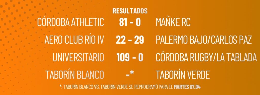 Publicado enPolideportivo Rugby Primera fecha del Súper 8 del Rugby jugado por Mujeres de la Unión Cordobesa 03/04/2026 Se jugó la fecha 1 del Top 8 del Rugby Jugado por Mujeres, y aquí los resultados. RESULTADOS DE LA 1ª FECHA POSICIONES LA FECHA QUE VIENE