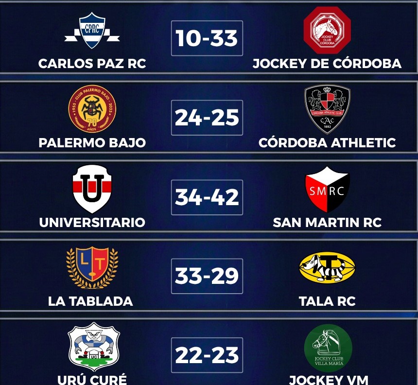 En Villa Carlos Paz, Jockey Club Córdoba se impuso con autoridad sobre Carlos Paz Rugby Club. En tanto, San Martín RC superó a Universitario en condición de visitante.