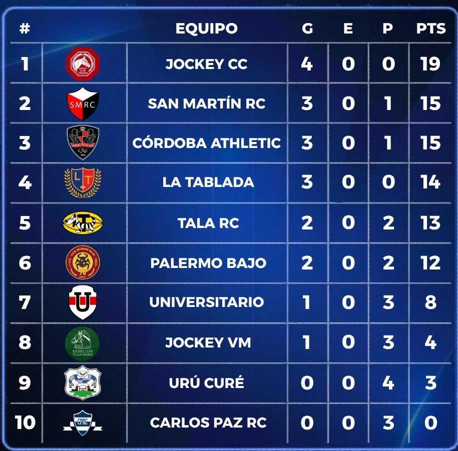 La cuarta fecha del Top 10 A de la UNIÓN CORDOBESA DE RUGBY dejó una jornada de resultados ajustados y movimientos importantes en la tabla de posiciones.