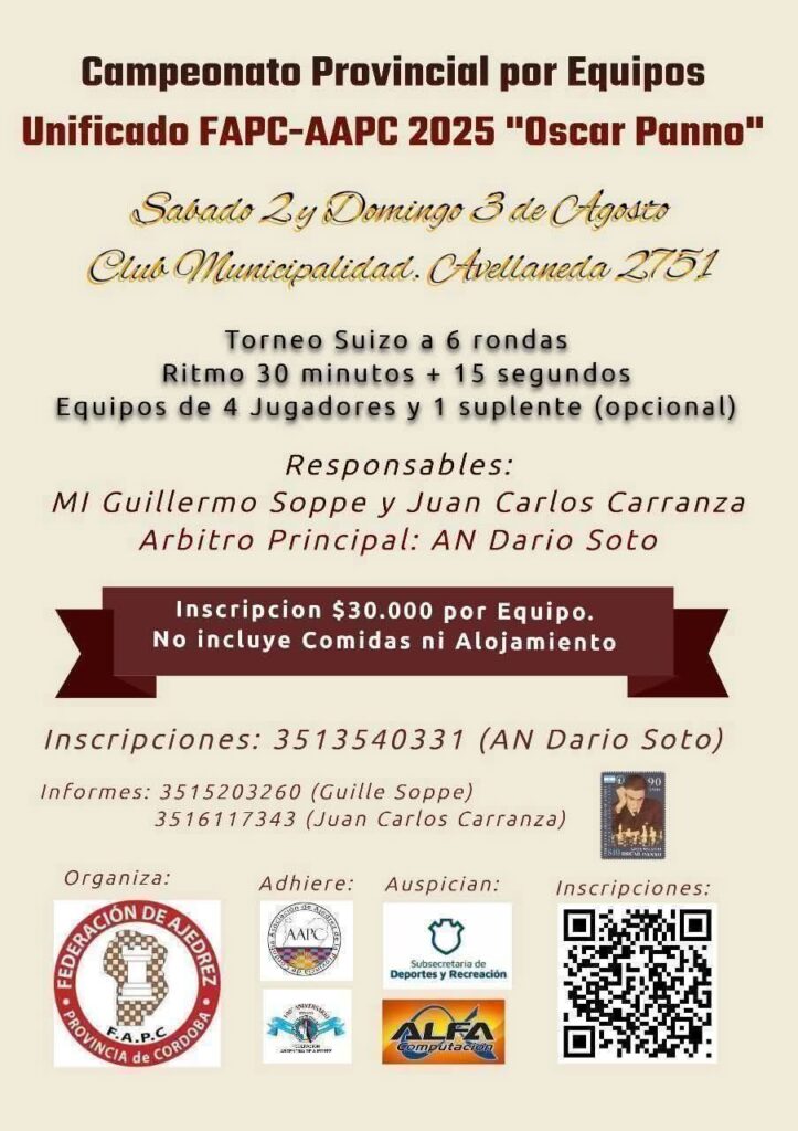 El torneo unificado AAPC-FAPC se realizará el sábado 2 y domingo 3 de agosto en el Club Municipal en Alta Córdoba.