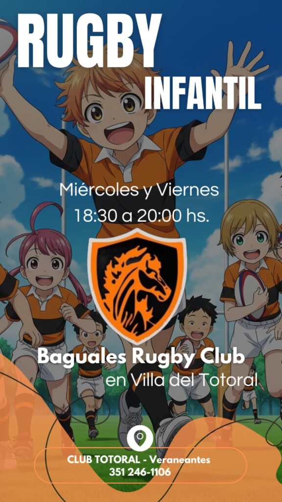 Si vivís en la zona norte de la provincia cercano a Totoral, Las Peñas, Sarmiento o Villa Gutiérrez llegate a la Escuelita de Rugby Infantil de Baguales en Villa del Totoral.