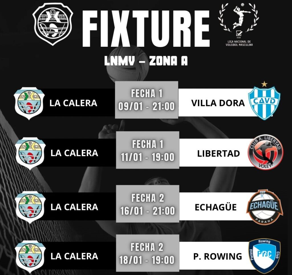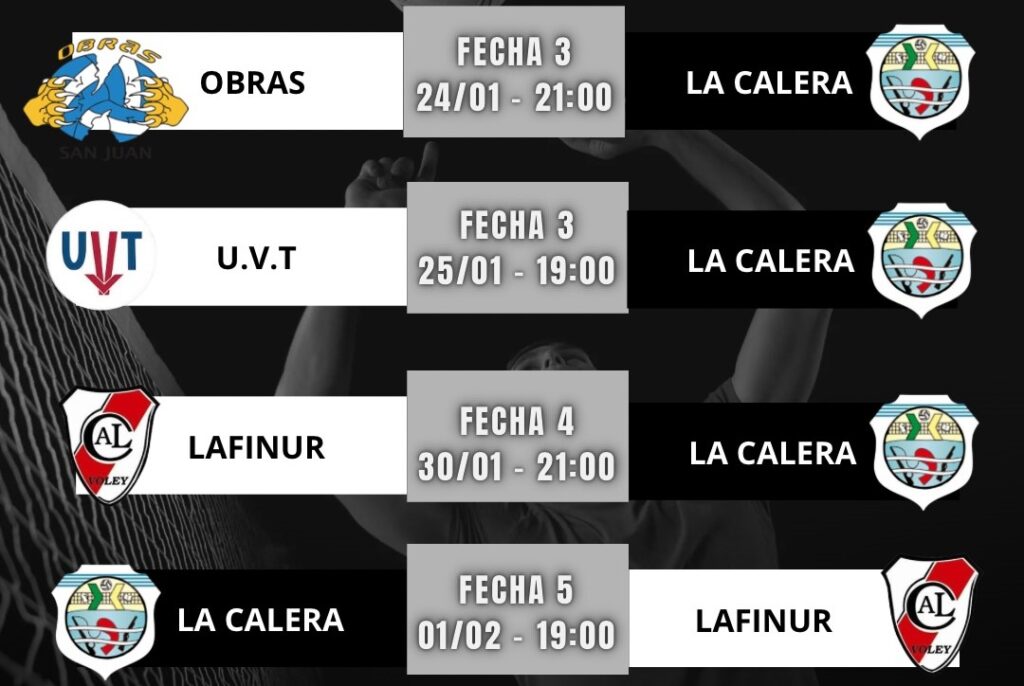 Este viernes 9 de enero será el debut de La Calera Vóley jugando ante Villa Dora de local a las 21.00. El domingo, también en su estadio el rival será Libertad de San Jerónimo a las 19.00.