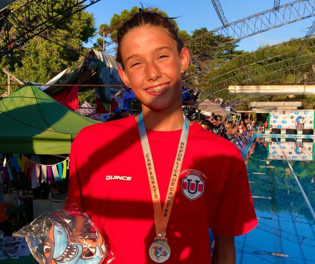 Las medallas ganadas por Francesca Rossi en los Binacionales de Chile no son casualidad. Es el fruto de todo el trabajo realizado durante el año de la nadadora junto a su papá Federico Rossi, su entrenador en el Club Universitario.