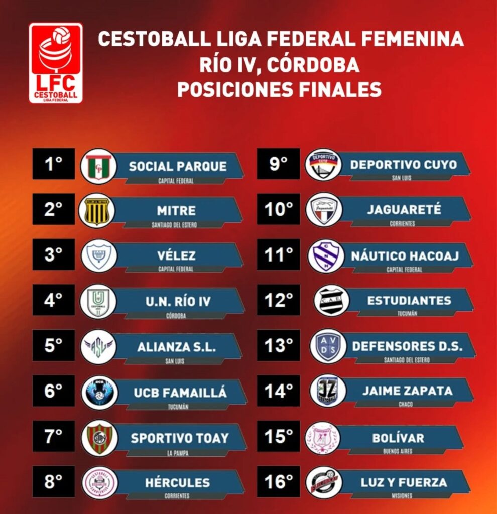 UNIVERSIDAD NACIONAL DE RIO CUARTO, Campeón del Provincial 2025 se ubicó en la cuarta posición de la Liga Federal de Cestoball que justamente se disputó en la ciudad del sur provincial.